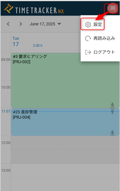 設定内容(実績工数の入力単位など)はPC版のタイムシート画面と同じです。