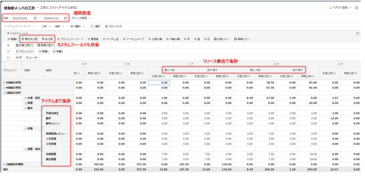 アイテム単位で分析可能とするだけでなく、カスタムフィールドも対象とすることで、さらに広い範囲で分析できるようになりました。