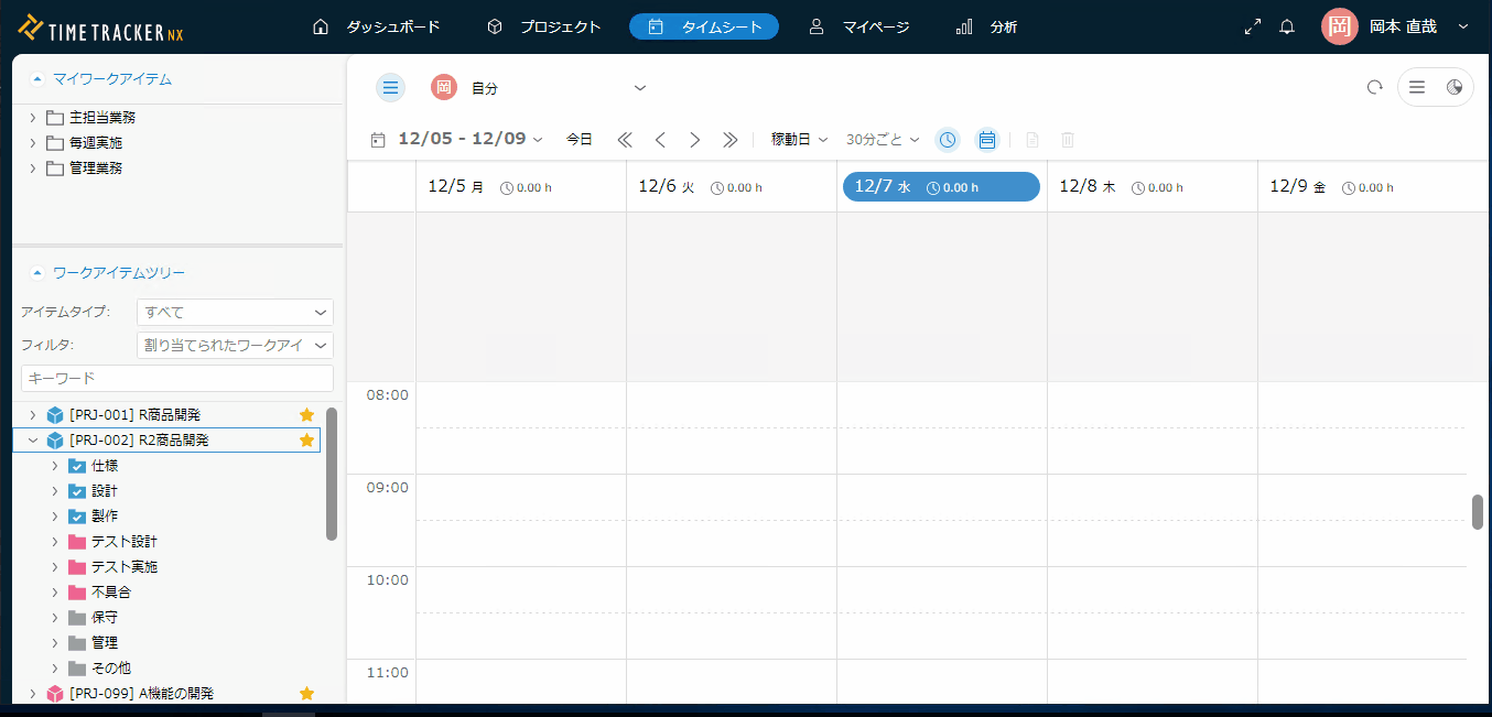 「タイムシート」→「ガントチャート」→「タイムシート」の順に画面を遷移した後、実績入力でエラーになる