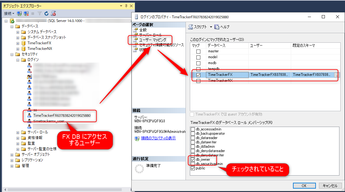 デスクトップ版DBを復元後に、DBにアクセスするユーザーの権限が外れることがあります。