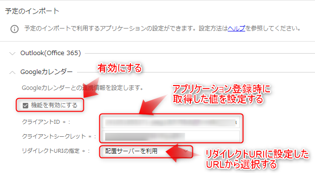 設定に誤りがあるとカレンダー連携に失敗します。