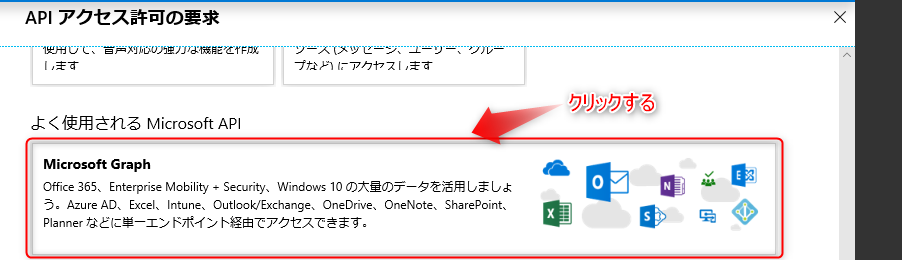 「Microsoft API」タブで下にスクロールし、「Microsoft Graph」を選択してください。