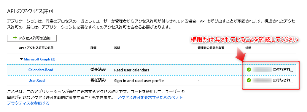 選択後、「アクセス許可の追加」をクリックしてください。
