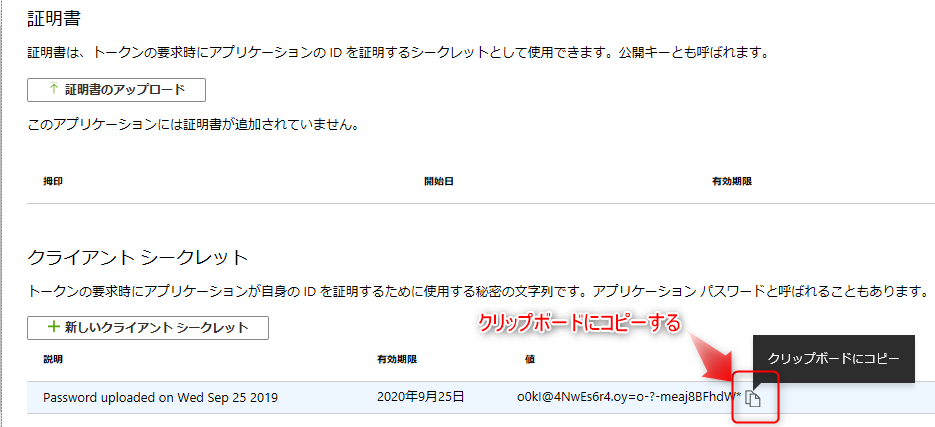 クライアントシークレットをコピーし、保管してください。