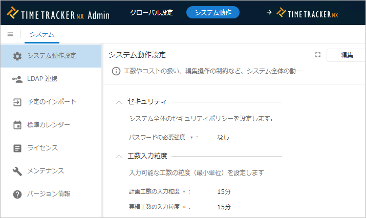 選択肢は以下のとおり。項目 設定可能な粒度 計画工数の入力粒度 6分、15分、60分 実績工数の入力粒度 5分、6分、10分、15分 -