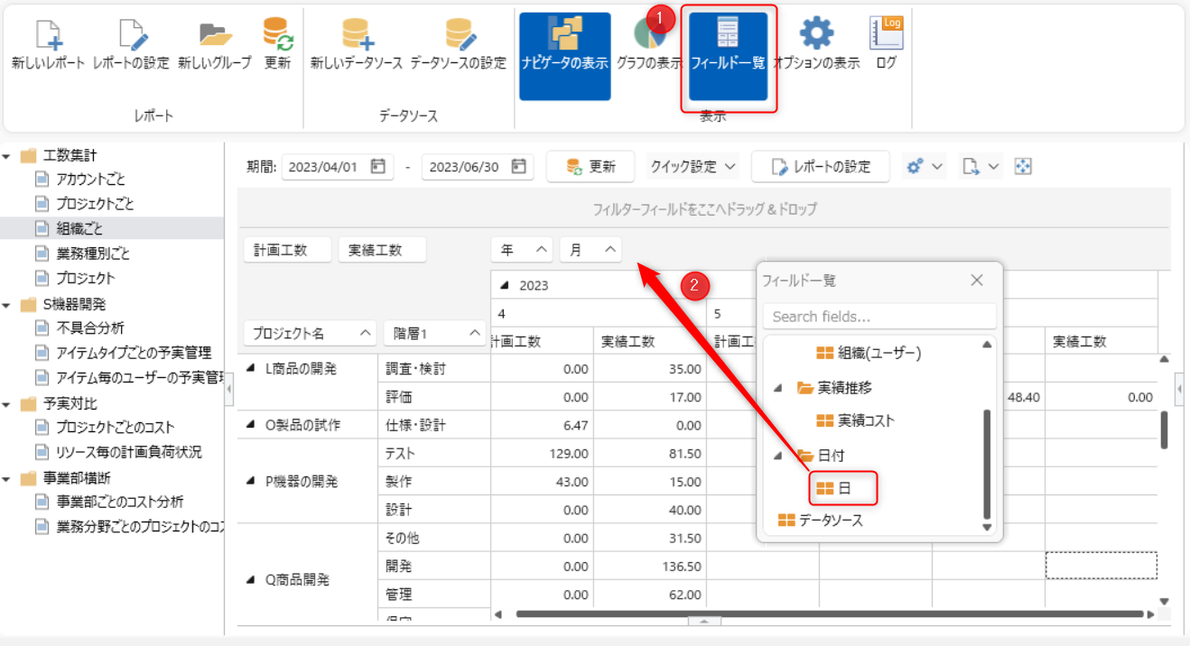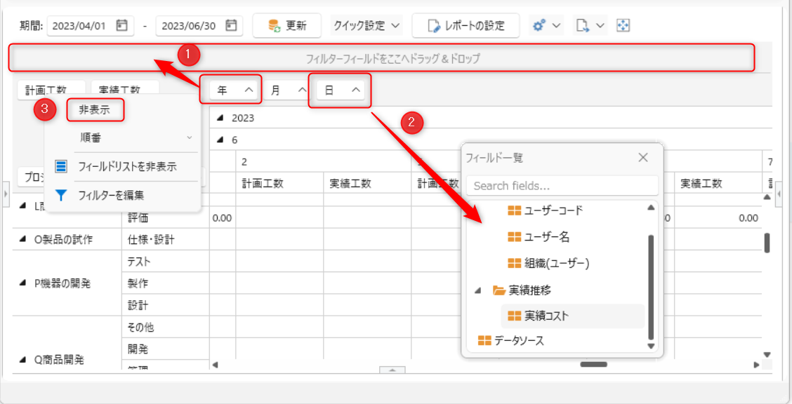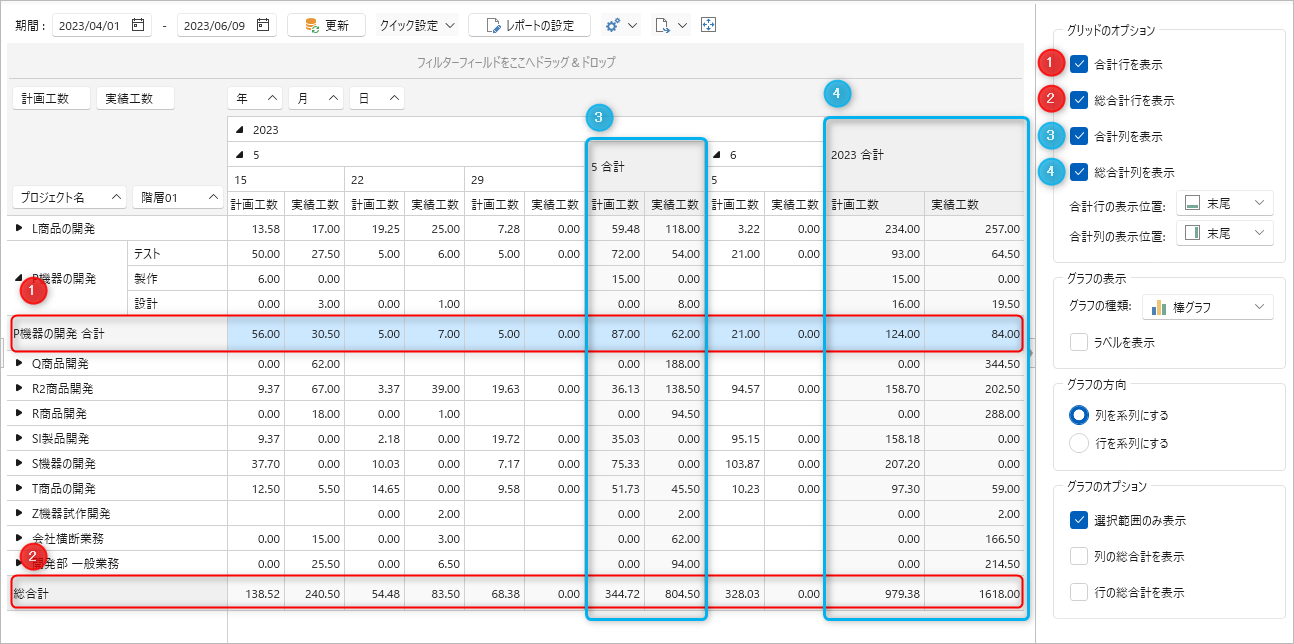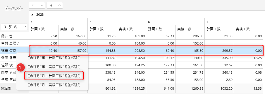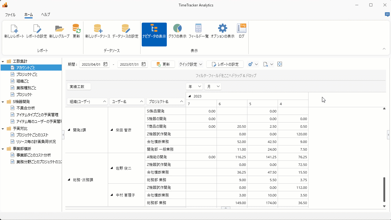 詳細は次のリンクを参照ください。: 「TimeTracker NX のピボット分析機能」