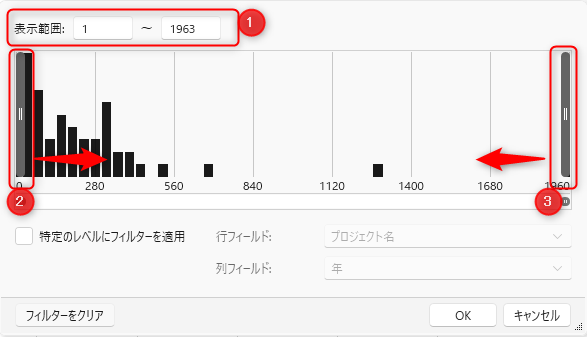 | ③ | プリセットされた期間から選択した内容で①を変更します。 | - |