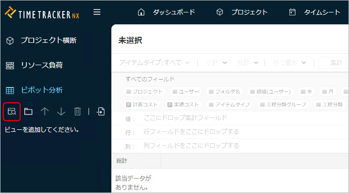 画面左側のツールバーの「ビュー追加」アイコンをクリックする。