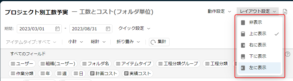 利用するフィールドを設定するエリアの表示位置を変更することができます。