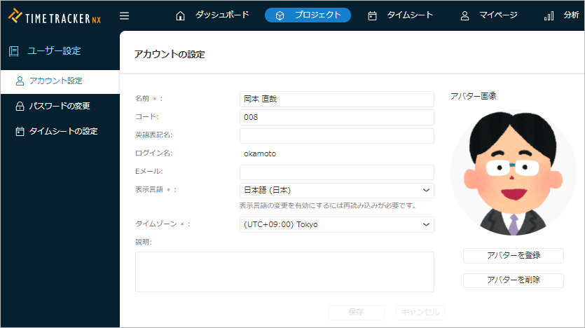 | タイムゾーン | TimeTrackerを利用するタイムゾーンを設定します。 |