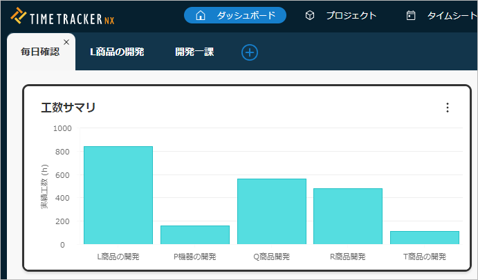 ユーザーやプロジェクト単位で工数を簡単に比較することができます。