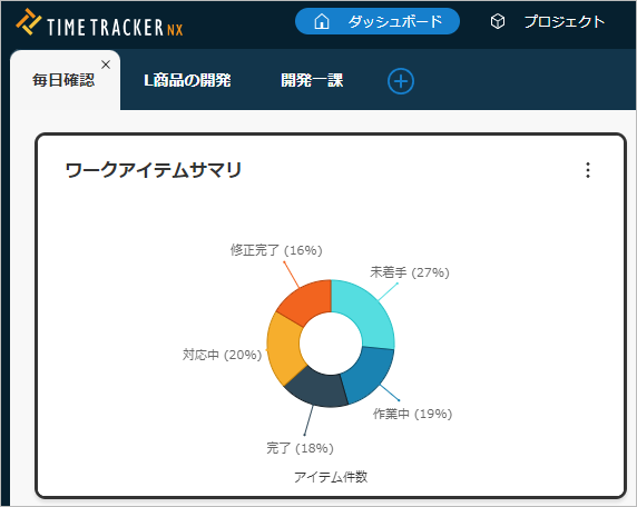 ワークアイテムサマリウィジェットではプロジェクトの進捗状況をモニタリングすることができます。