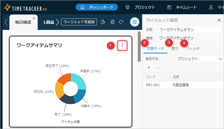 以下の方法でワークアイテムサマリウィジェットに表示する内容を設定します。