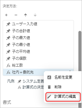 既存の計算式を変更したい場合は、対象の計算式を右クリックし、「計算式の編集」を選択してください。