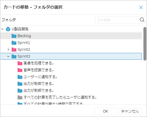 カンバンでは選択したフォルダの直下に存在するアイテムを表示します。