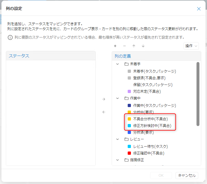 アイテムをカテゴライズするグループをステータスで定義します。