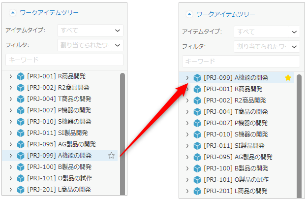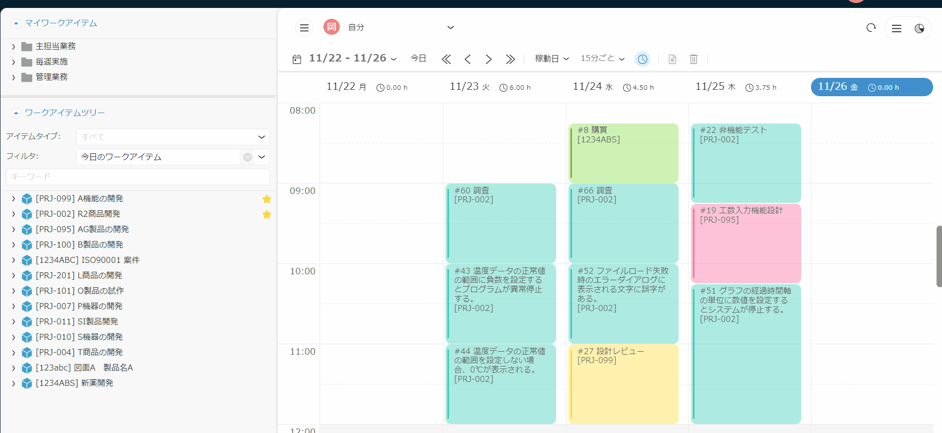 ツリーからアイテムを探す手間を削減し、簡単に実績工数を入力することができます。 -