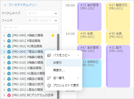 ただし、割り当てがあっても以下に合致するワークアイテムは表示されません。- 実績入力がロックされている