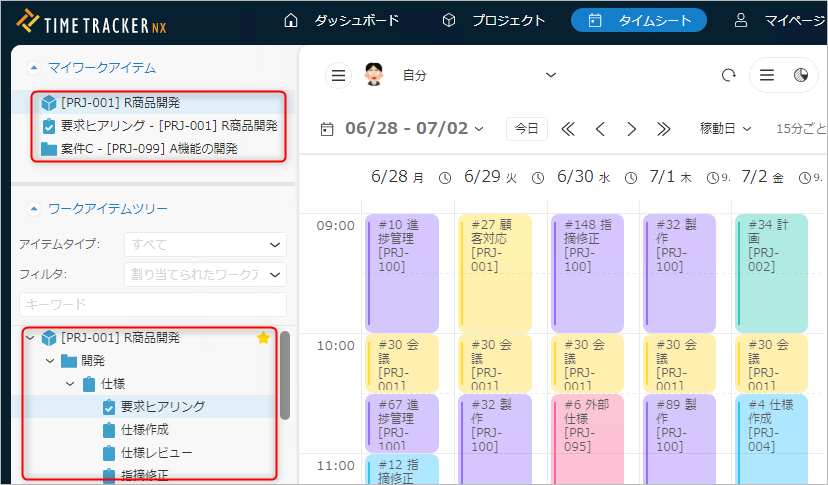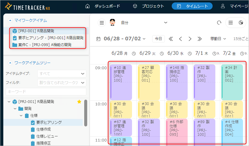 「ワークアイテムツリー」に表示されるワークアイテムが多い場合、実績工数を入力する際に対象のアイテムを探す手間が増えます。