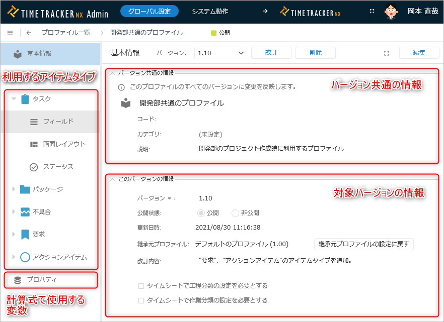 • バージョン:プロファイルのバージョン (詳細は次のリンクを参照ください。: 「バージョン管理」)