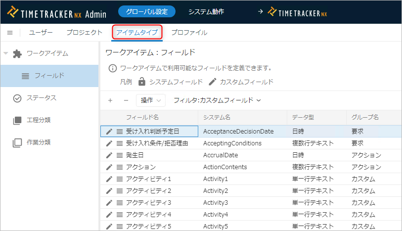カスタムフィールドは、ユーザーが自由に定義できるフィールドです。