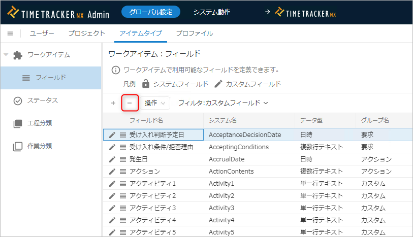 カスタムフィールドを削除する