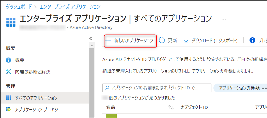 7. サイドナビから「エンタープライズアプリケーション」をクリックしてください。