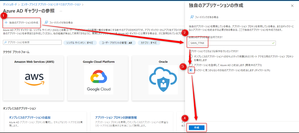 8. 遷移後の画面で以下を操作し、「作成」をクリックしてください。