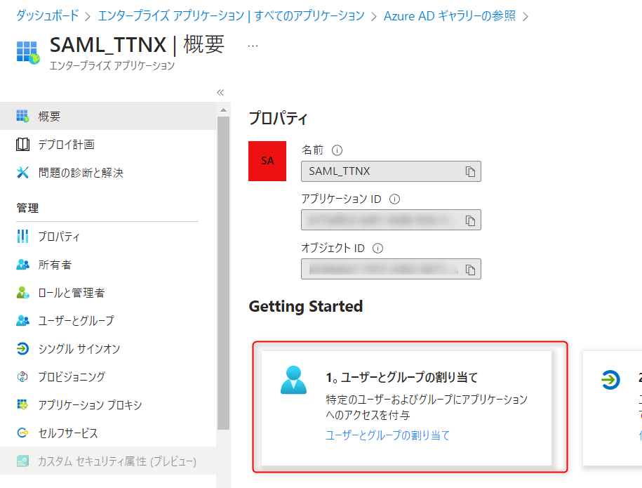 9. 遷移後の画面で「ユーザーとグループの割り当て」をクリックしてください。