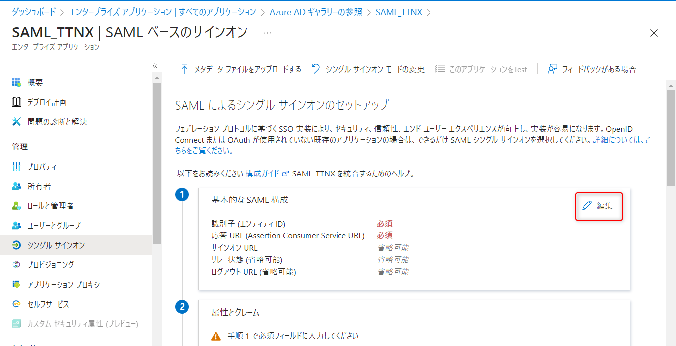 16. 遷移後の画面で「SAML ベースのサインオン」をクリックして画面を移動してください。