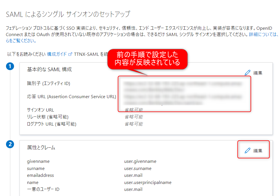19. Microsoft Azure AD 設定画面に戻り、「④ [設定したアプリ名]のセットアップ」の以下の項目の値を