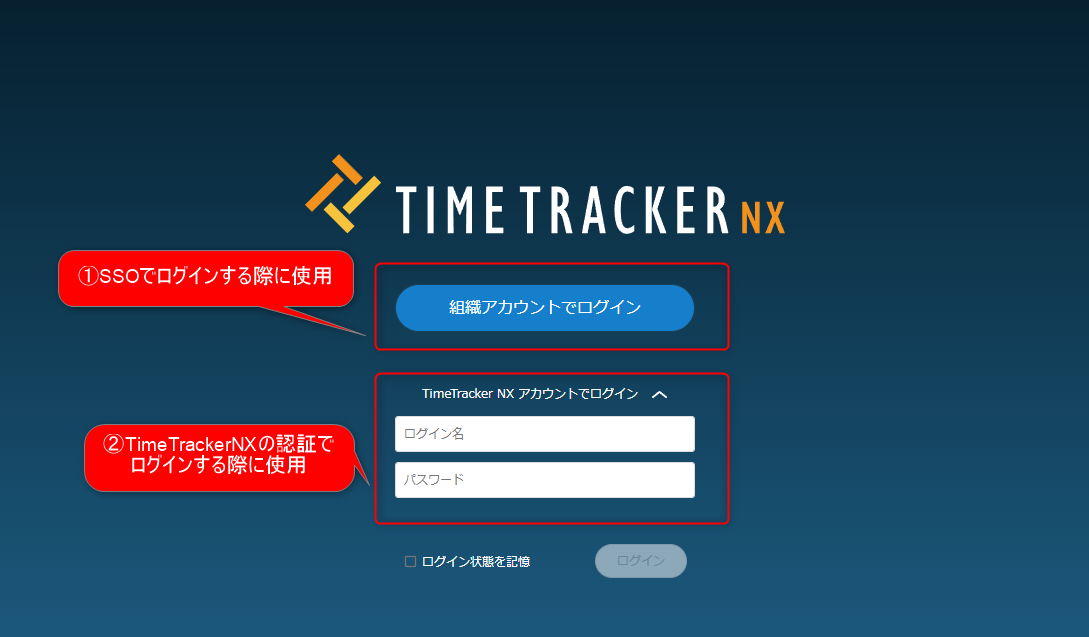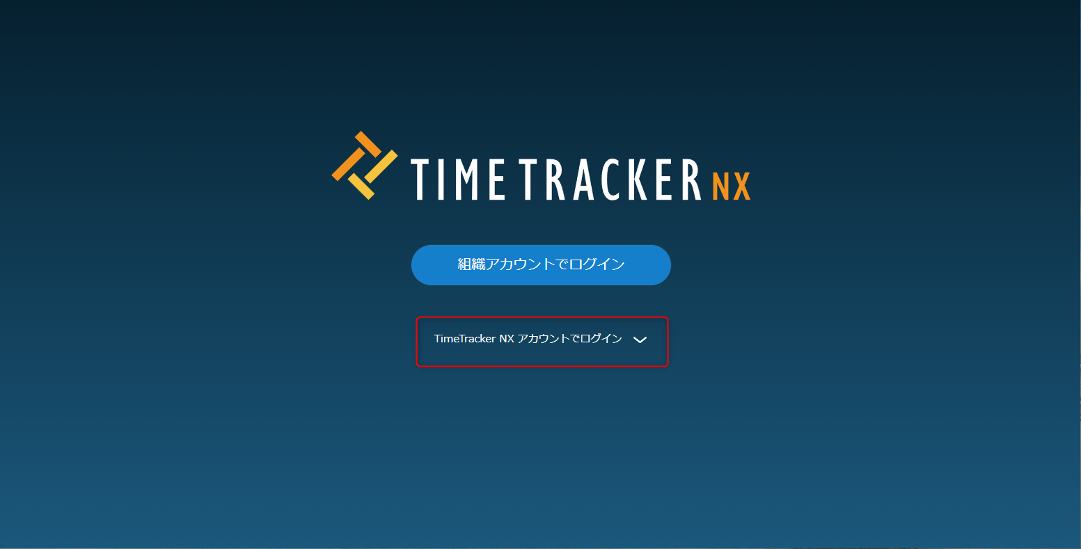 TimeTracker NX のログイン画面で「組織アカウントでログイン」をクリックしても、ログインできます。