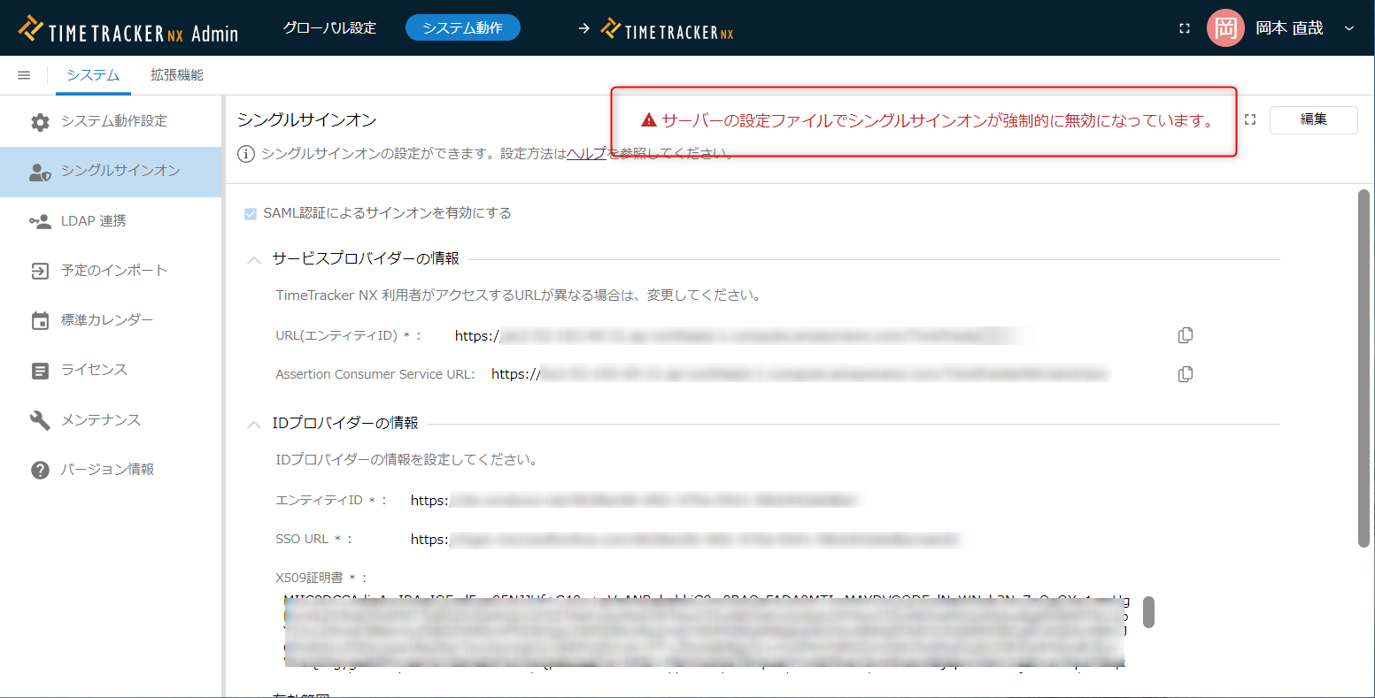 設定時の注意事項を次のリンクに記載していますので、事前にご確認ください。: 「SAML認証時の注意事項