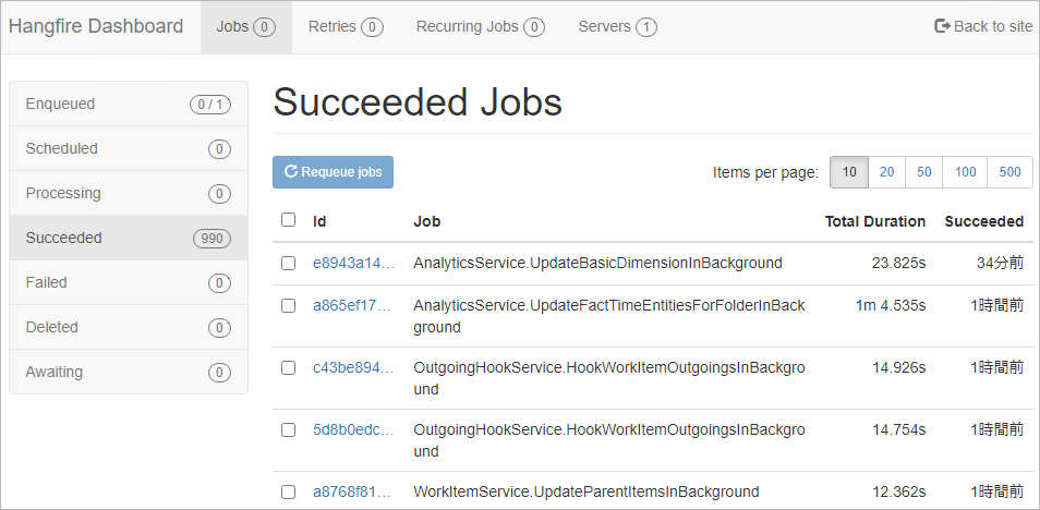 このために、メンテナンス画面ではバックグラウンドで実行されている処理(ジョブ)の数を確認することができます。