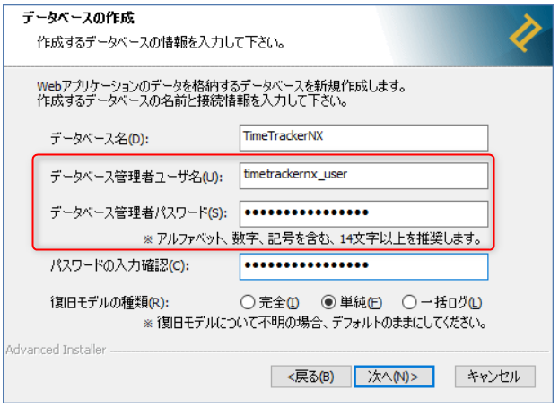 TimeTracker NX インストール時に以下の画面で設定した情報を入力してください。