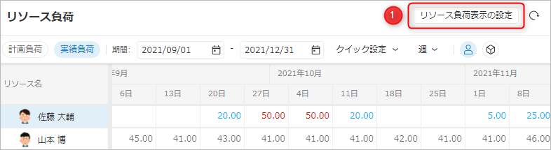 1. 「リソース負荷表示の設定」アイコンをクリックする。