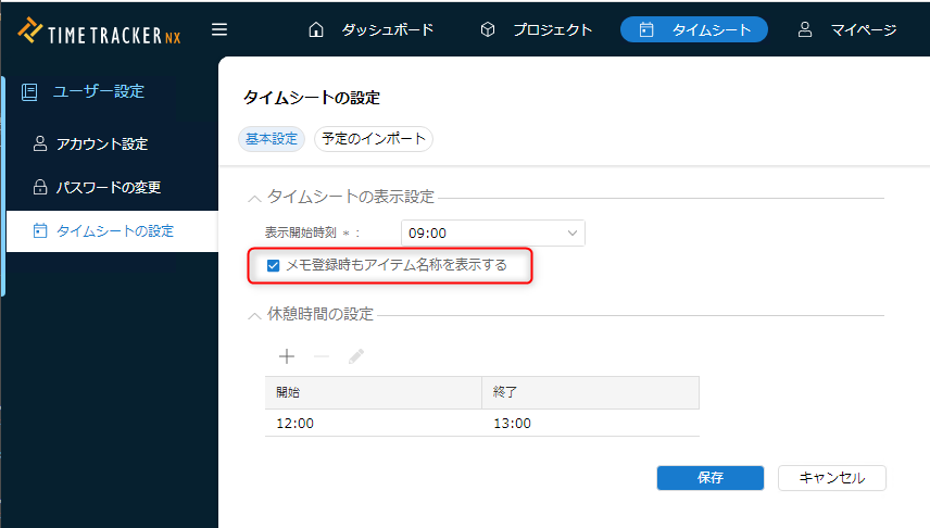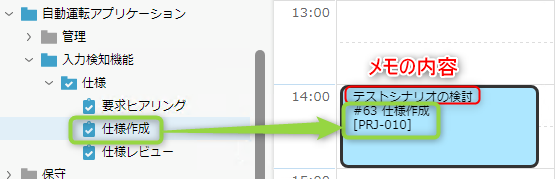 タイムシートにメモを記載した場合、メモとアイテム名の両方を表示します。