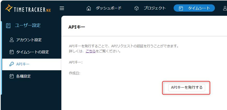 以下画面で「APIキーを発行する」をクリックし、作成された APIキーをコピーして使用してください。