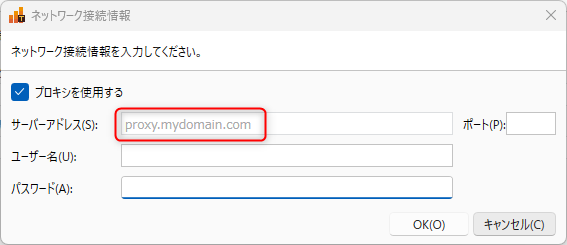 以下のダイアログが表示されますので、設定項目を入力してください。