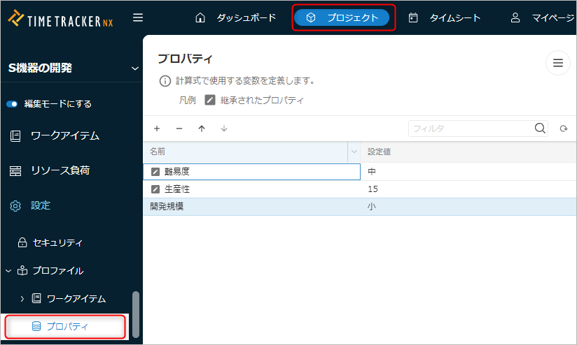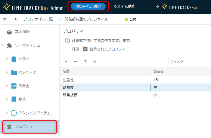 プロジェクトのプロファイルでプロパティ(変数)を定義し、計算式から参照できます。