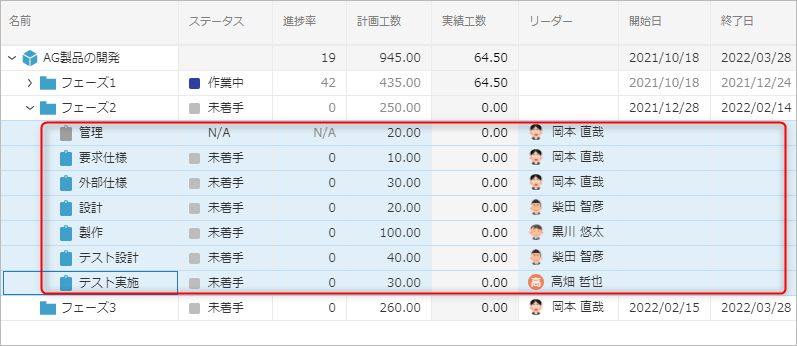 • 繰り返し開発など同じ構成のWBSを定義する場合