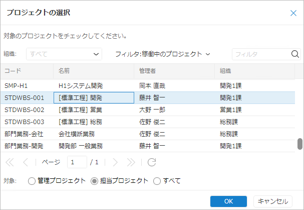フォルダツリー表示(表示対象WBSの絞り込み)×