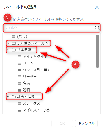 • 例えば、プロジェクトメンバー、カスタムフィールド があります。