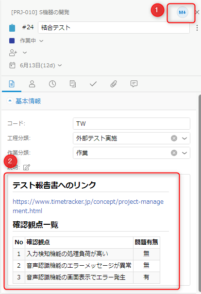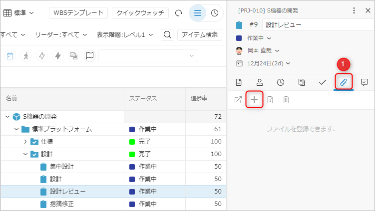ワークアイテムに成果物や関連する資料を添付して TimeTracker NX 上でまとめて管理することができます。