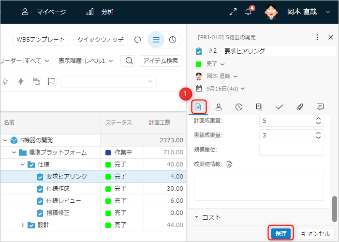 • 計画工数、実績工数や成果量が対象になります。