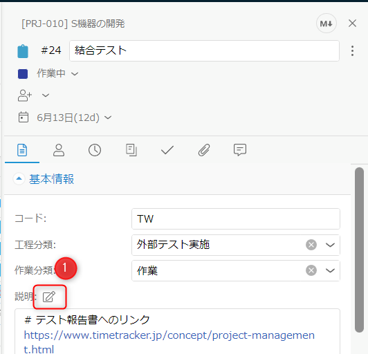 1. 編集ボタン(下図)をクリックし、Markdownのエディタ画面を表示する。