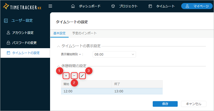 タイムシートで実績工数を入力する前に、昼休みなどの休憩時間帯を設定しておくことをおすすめします。