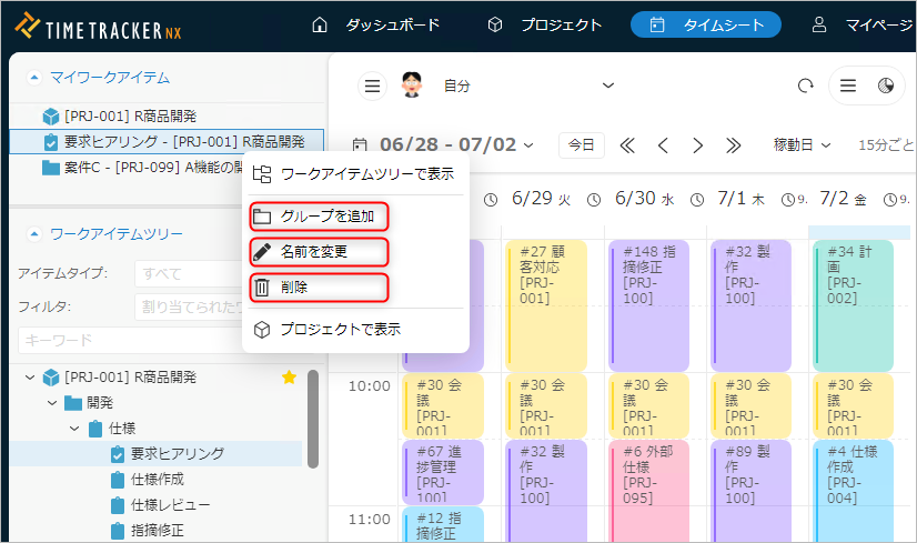 「マイワークアイテム」のアイテムは名前を変更したりグループ化することで、より使いやすくなります。