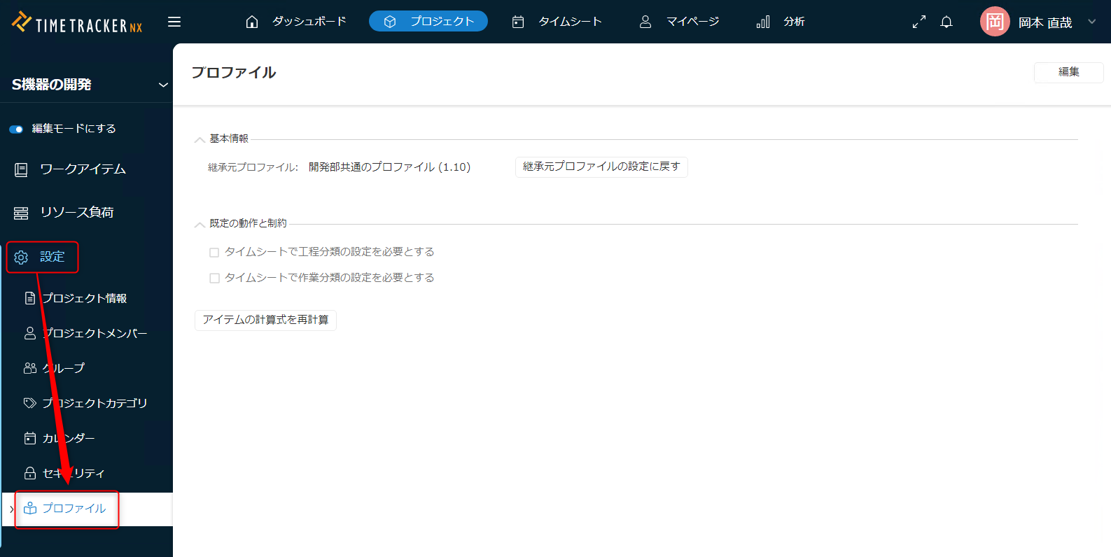 → プロファイル、工程分類/作業分類、アイテムタイプなどを更新されている方が対象です。