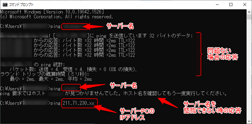 ping <サーバーマシン名>